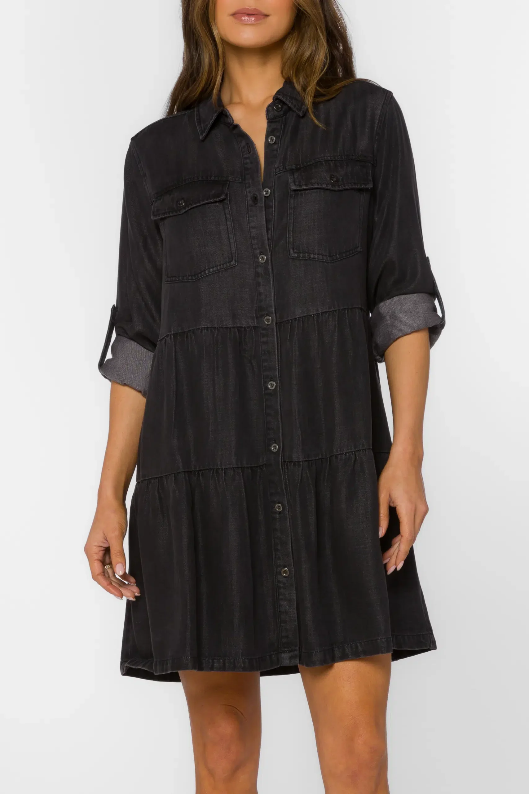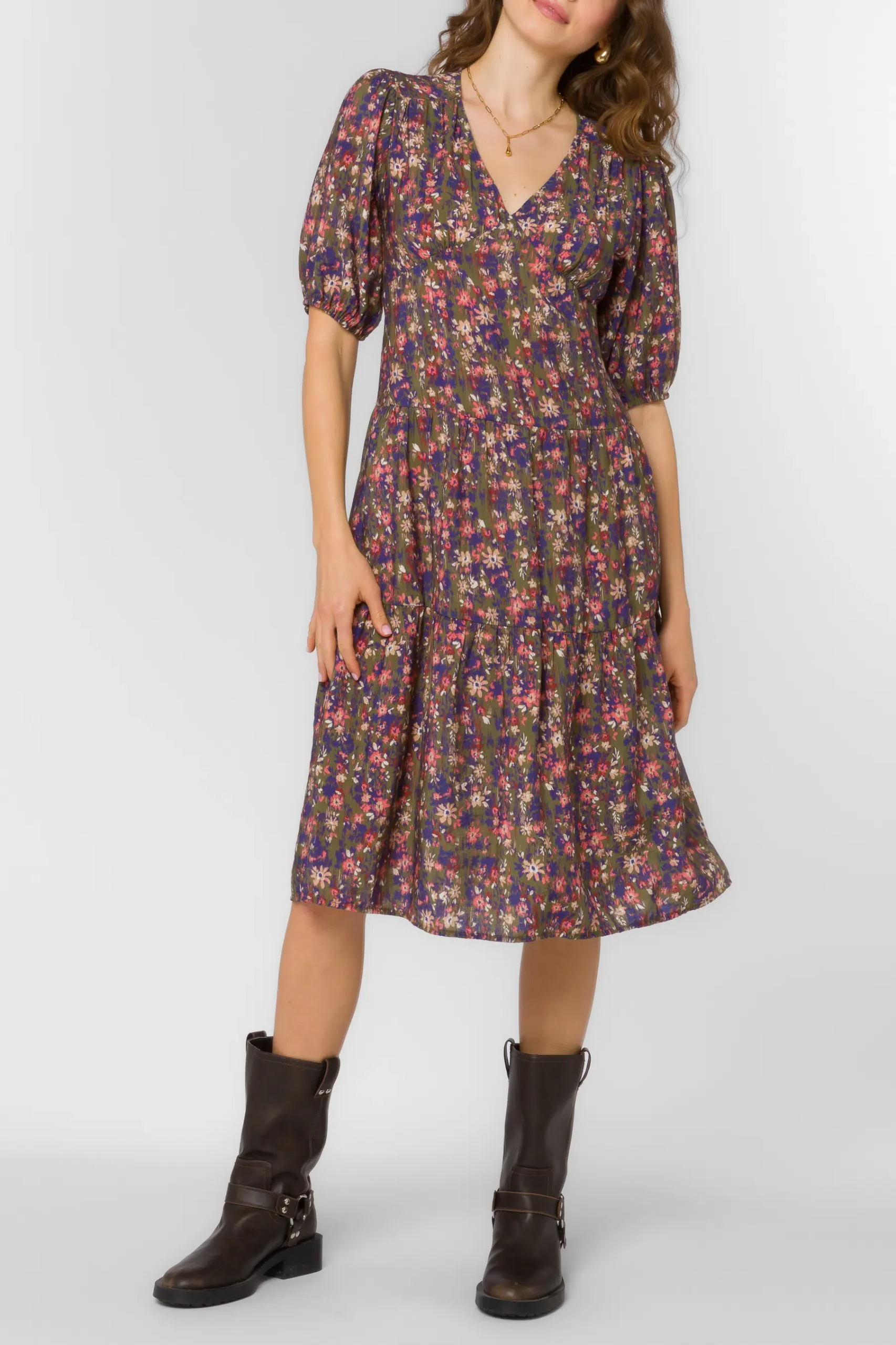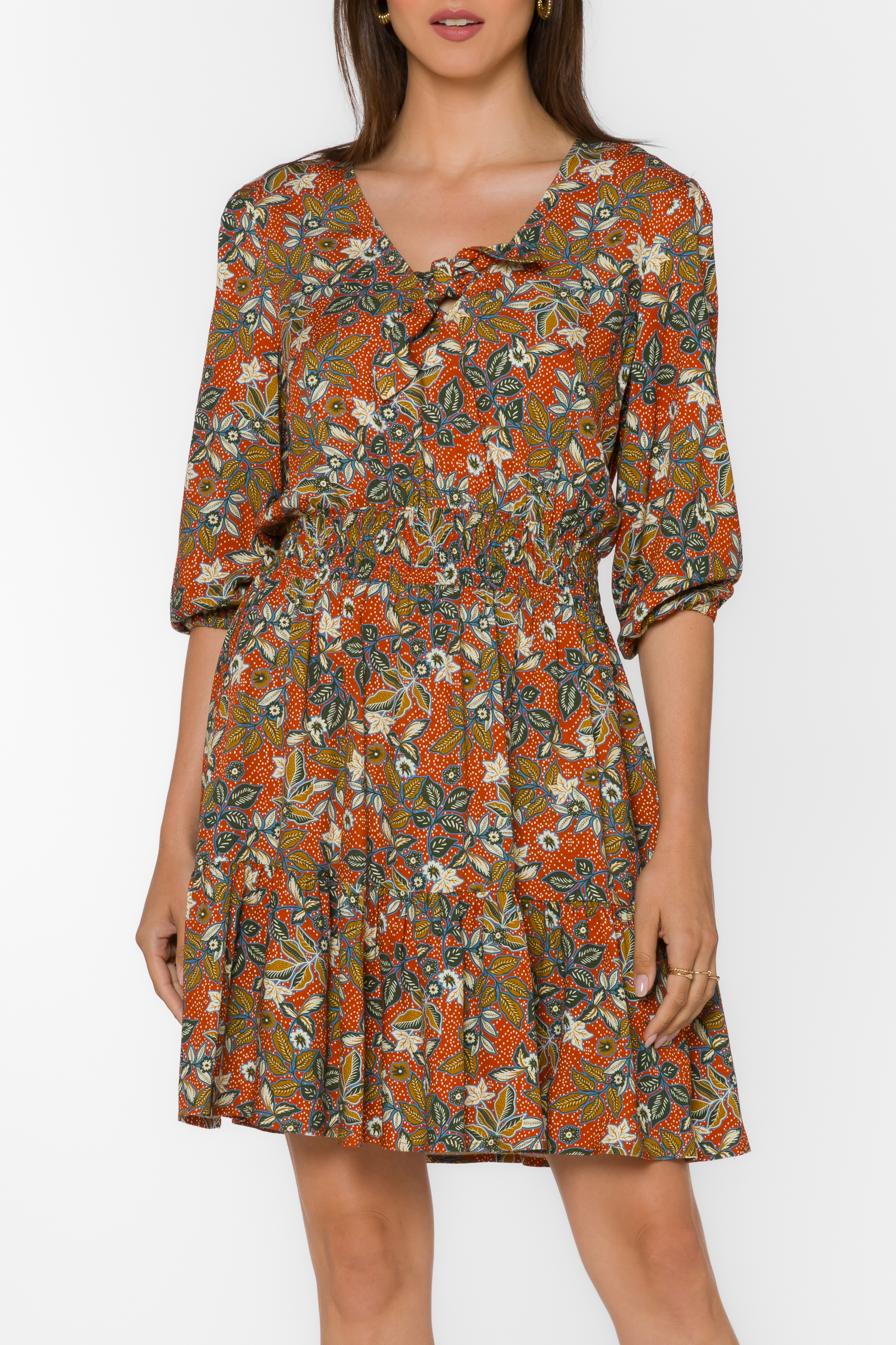 3/4 Sleeve Flounced Dress