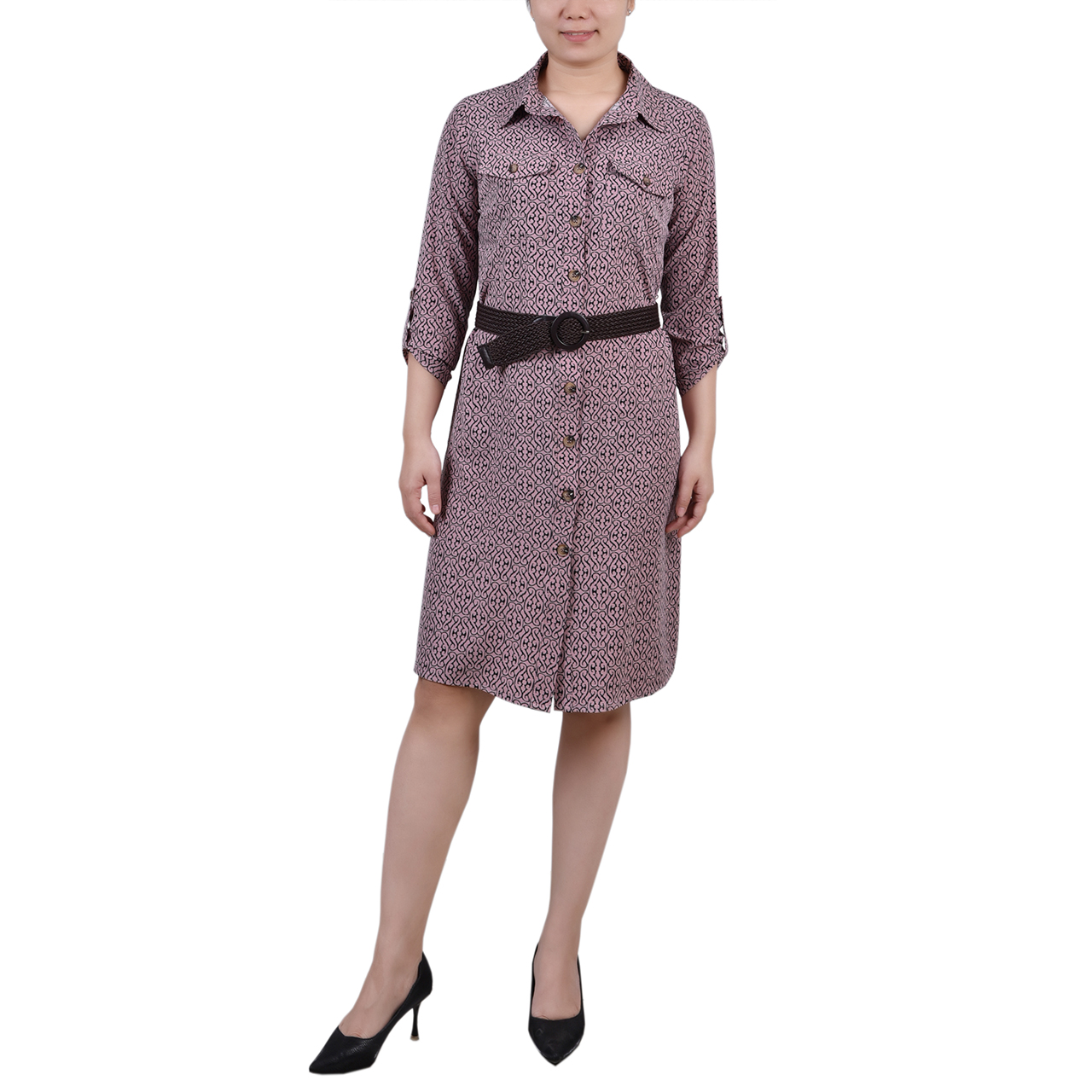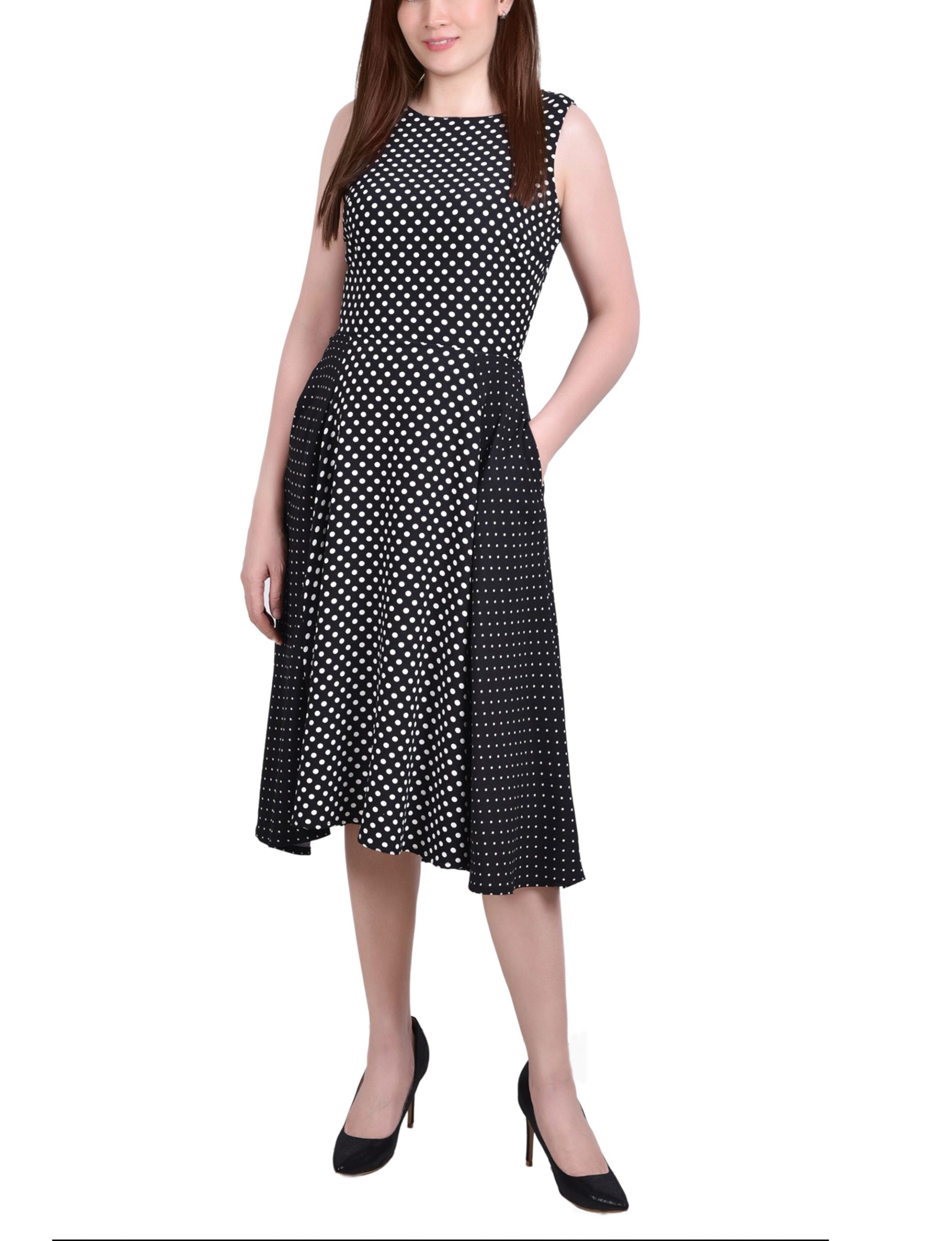 3/4 Sleeve Belted Swiss Dot Dress
