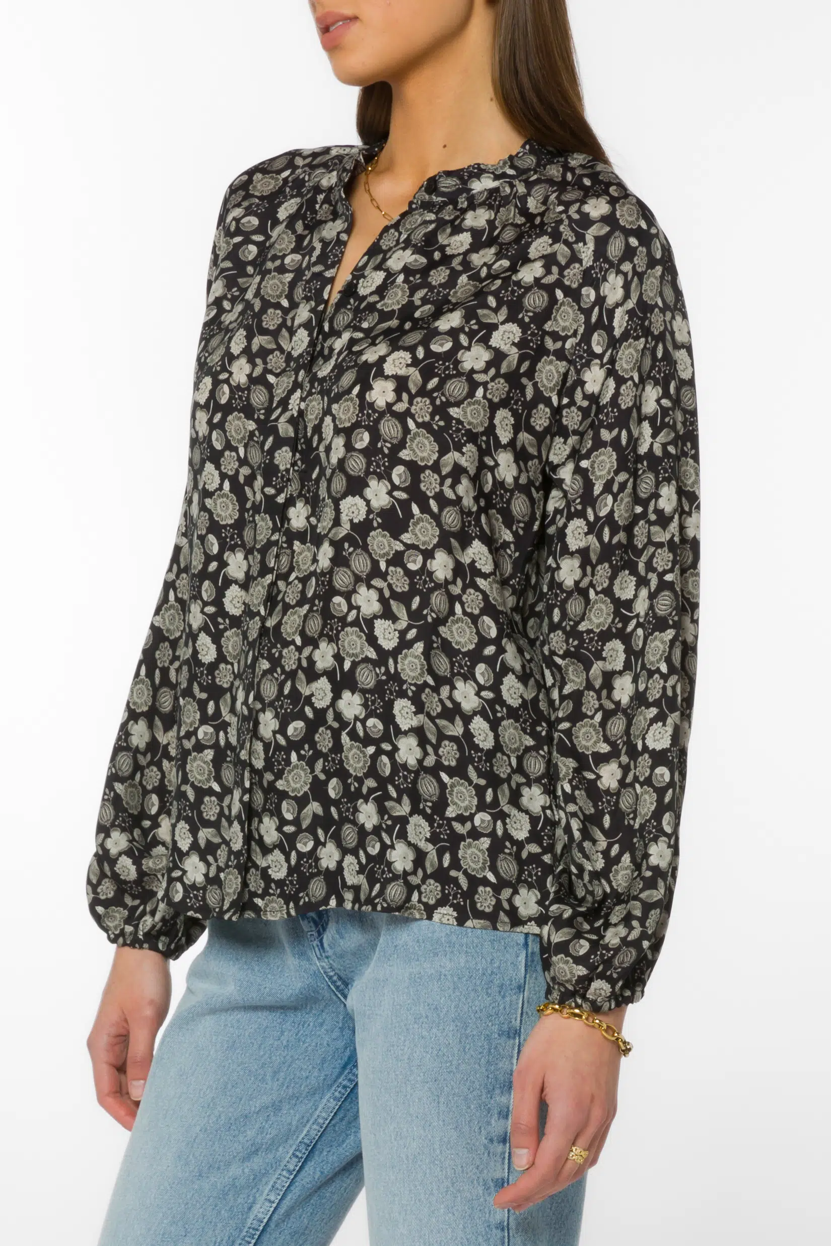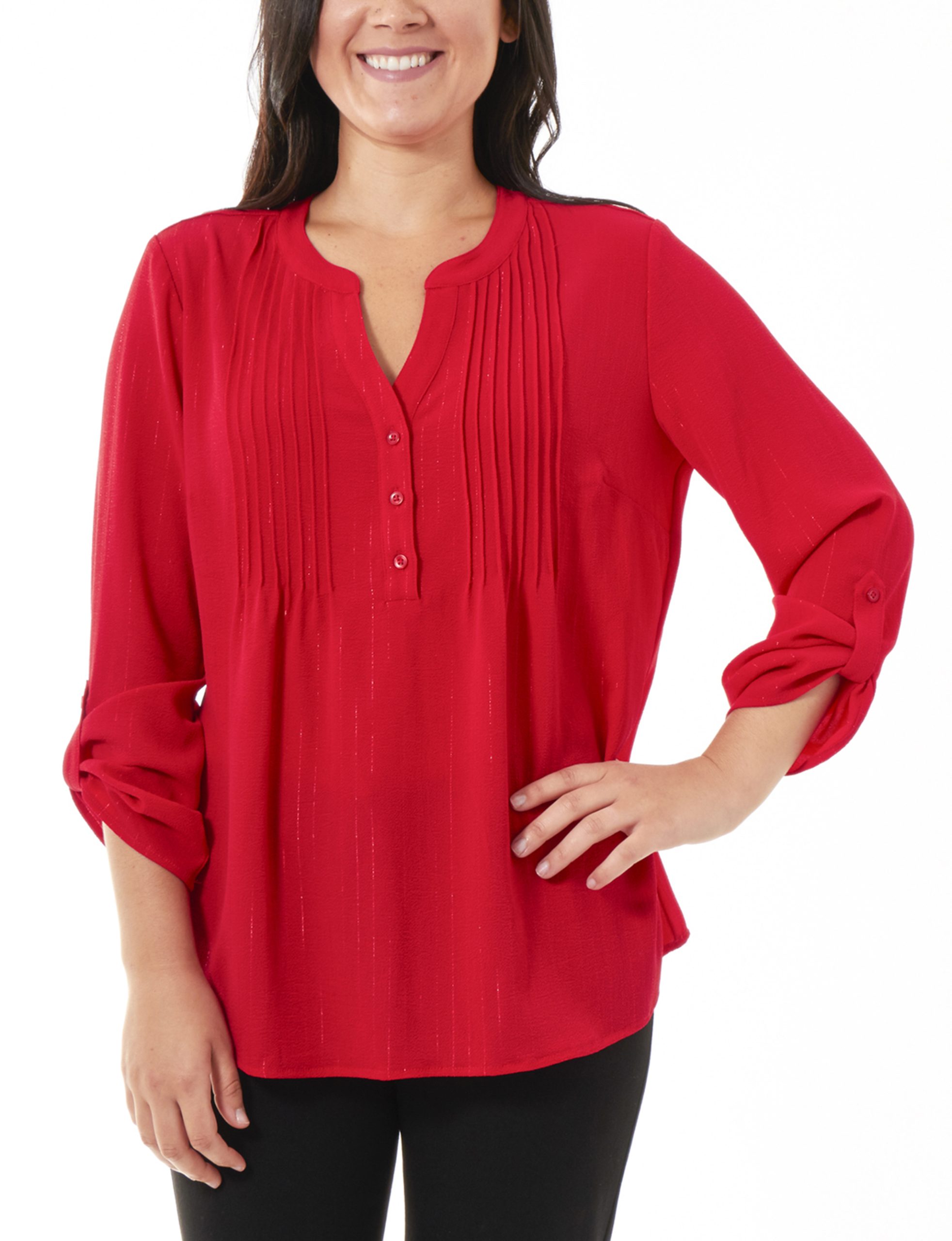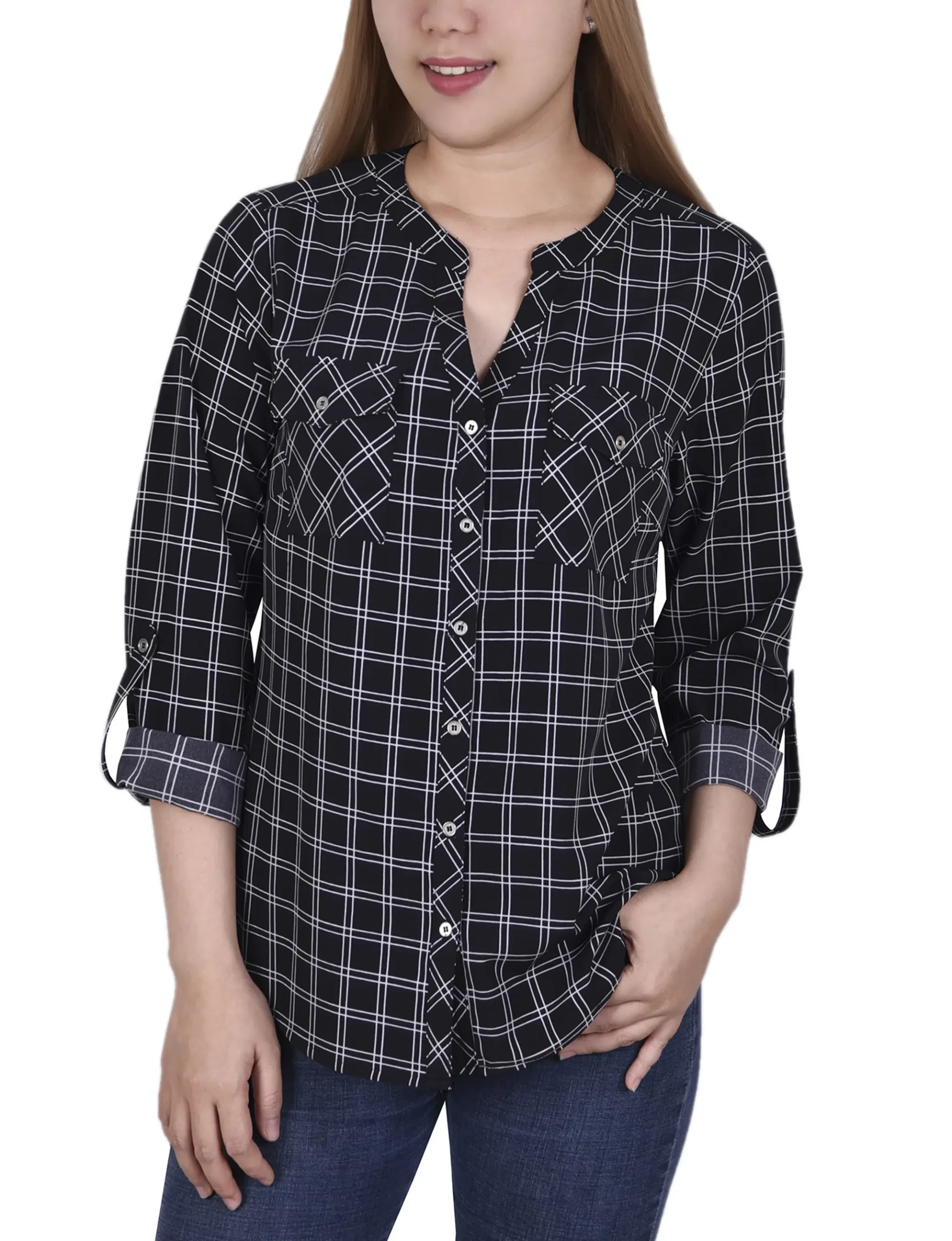 3/4 Roll Tab Sleeve Mandarin Collar Blouse