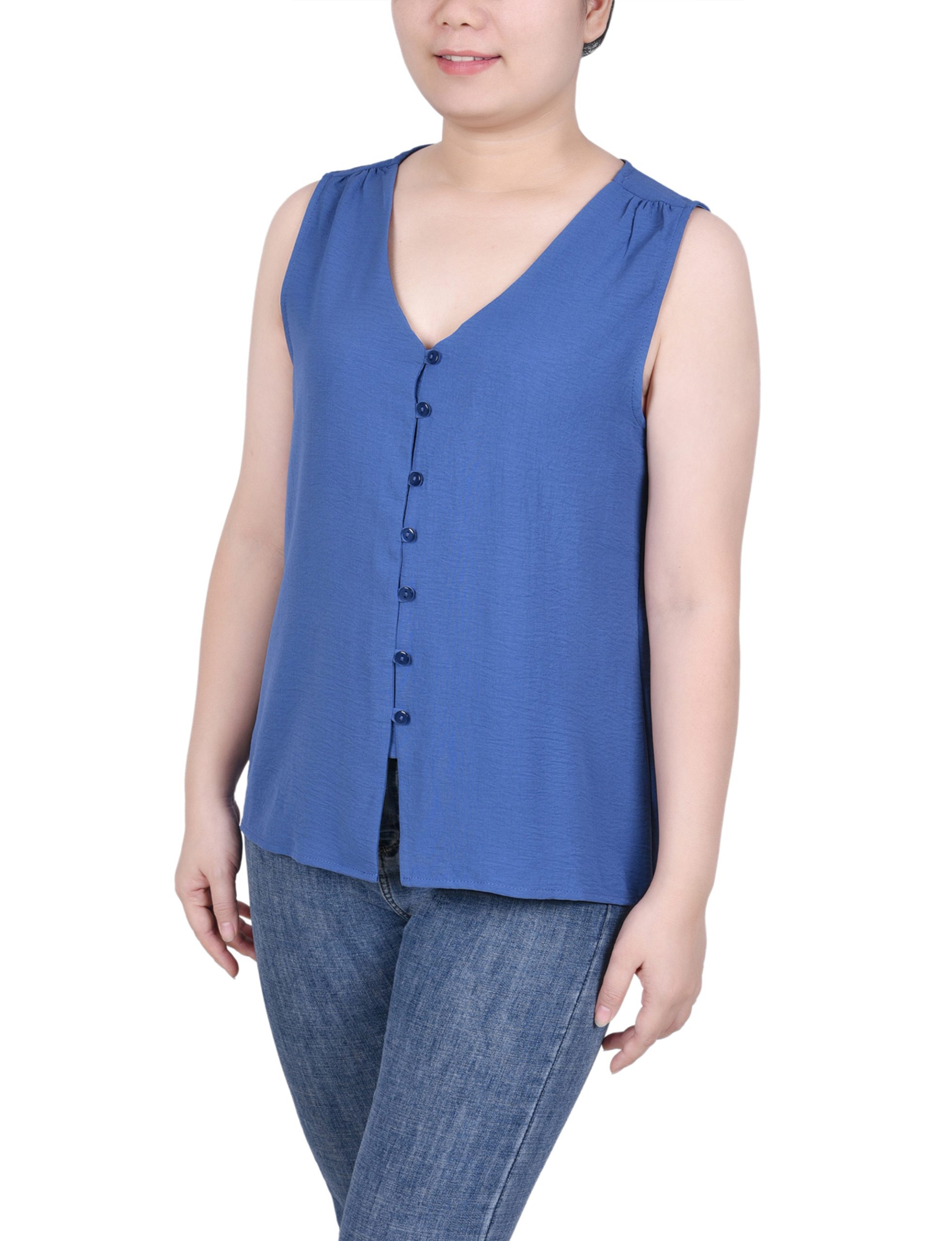 Sleeveless Button Front Blouse
