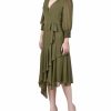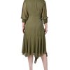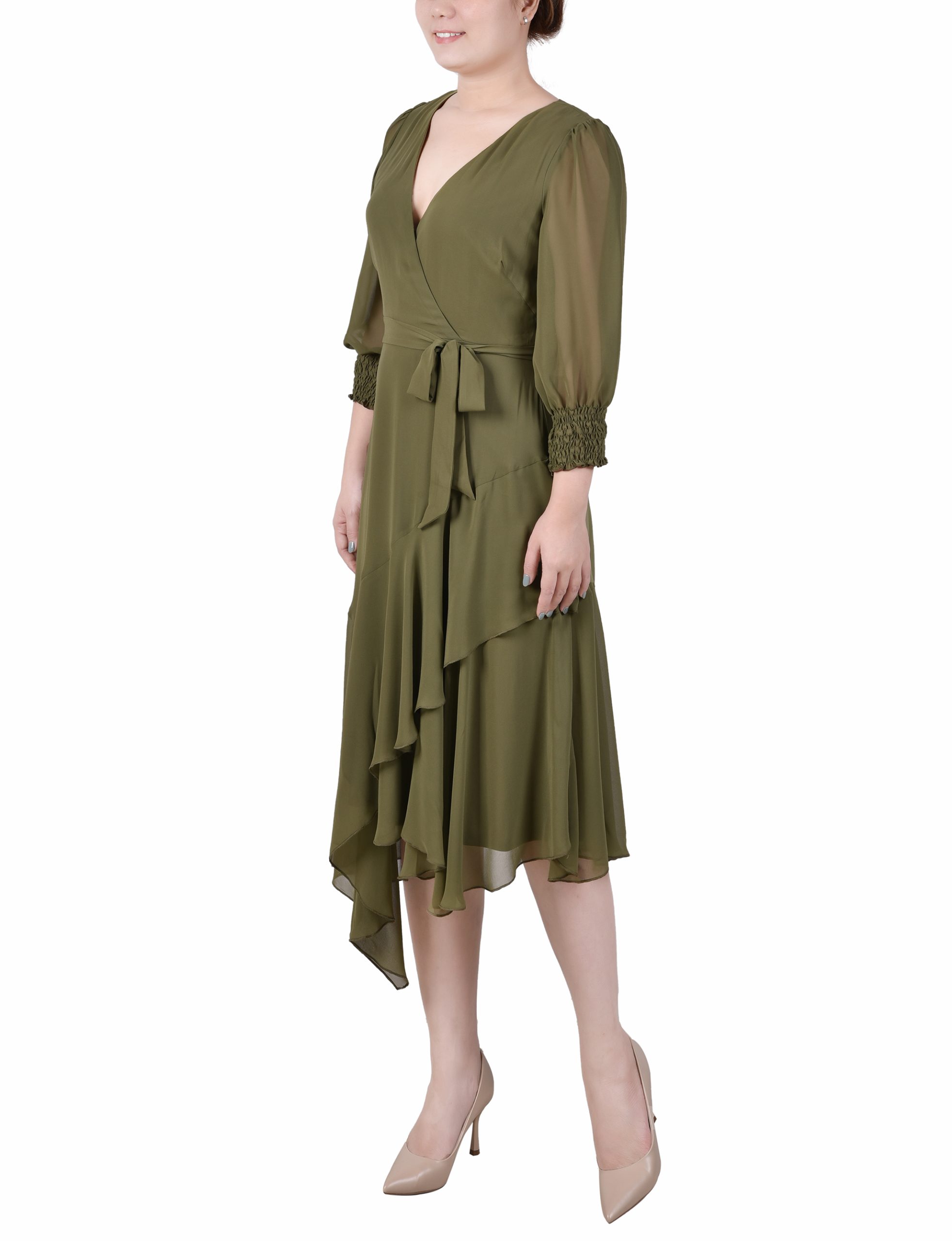 3/4 Sleeve Belted Chiffon Hankerchief Hem Dress