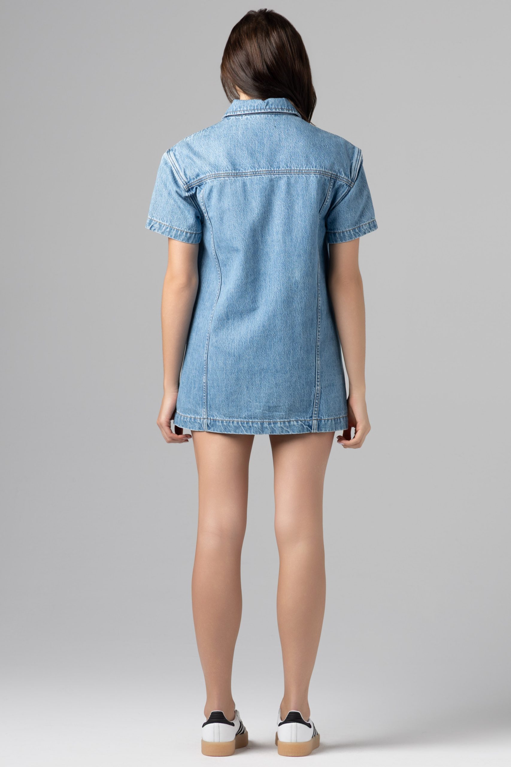 SHORT SLEEVE DENIM MINI A-LINE DRESS