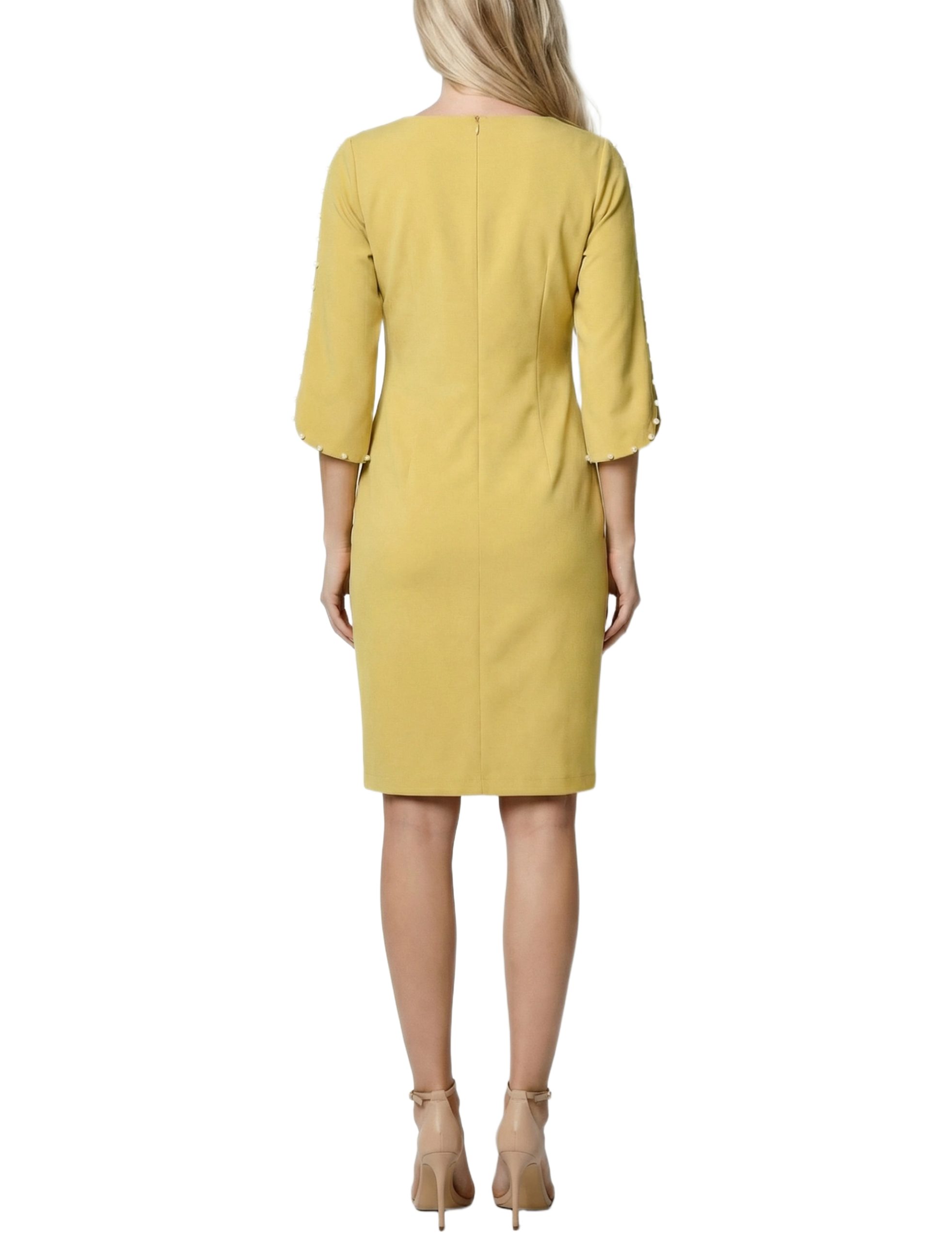 3/4 Pearl-Detail Petal Sleeve Dress