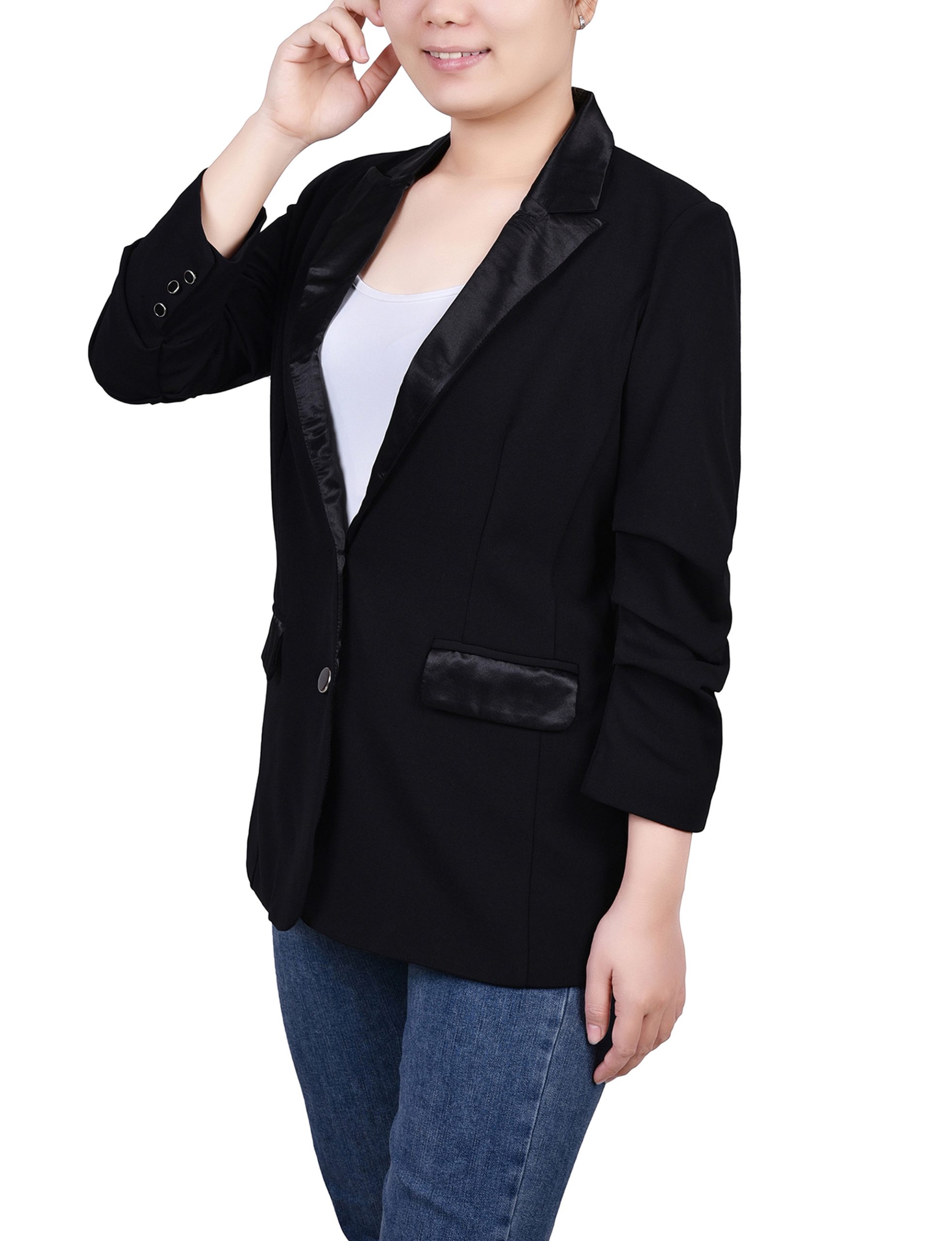 Satin Lapel Scuba Crepe Jacket