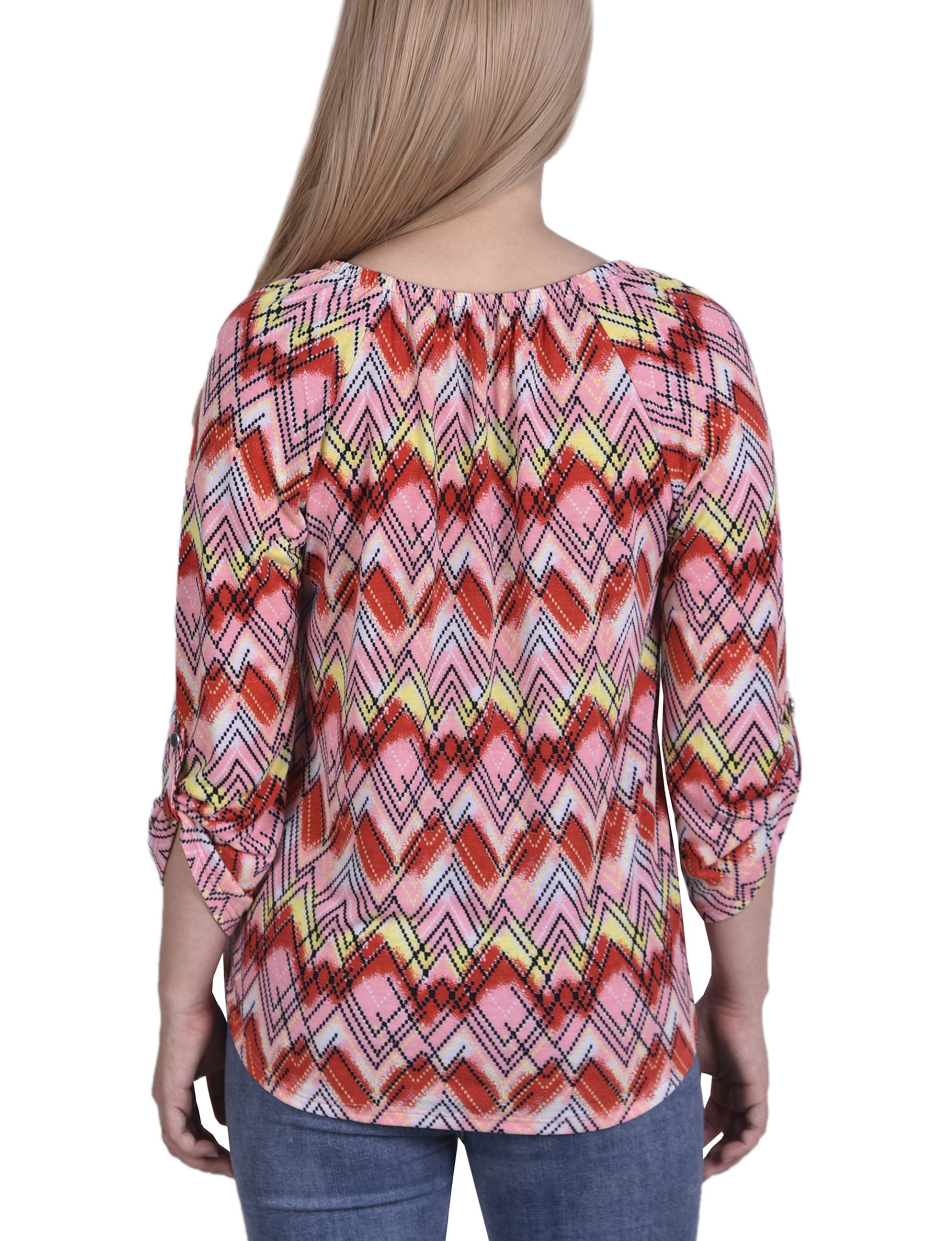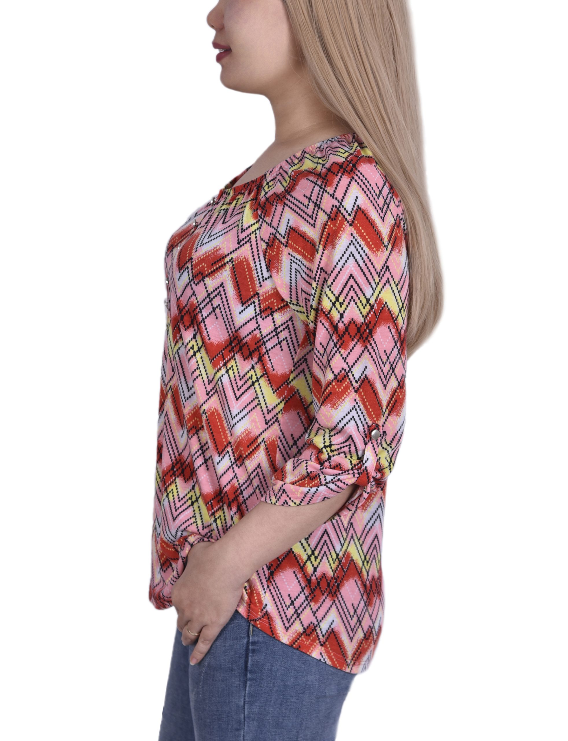 3/4 Roll Tab Sleeve Round Neck Top