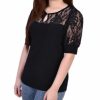 Short Puff Sleeve Top With Lace Sleeves And Yoke