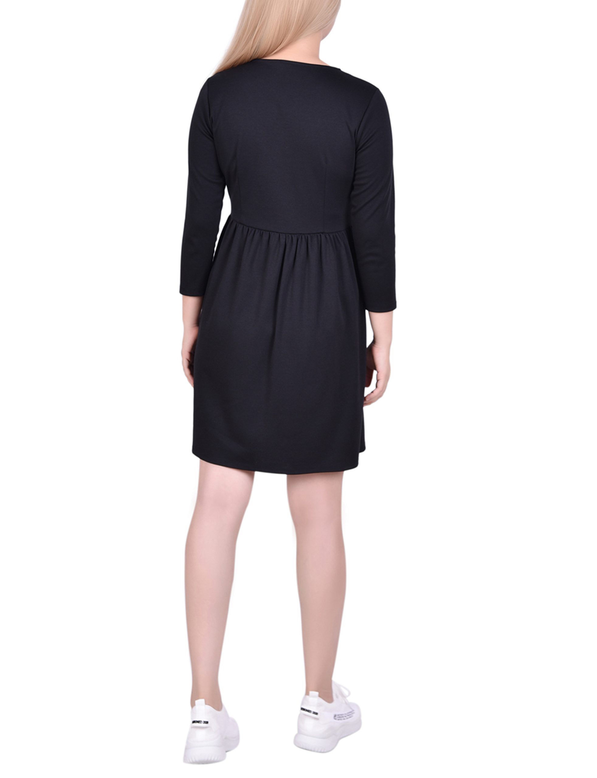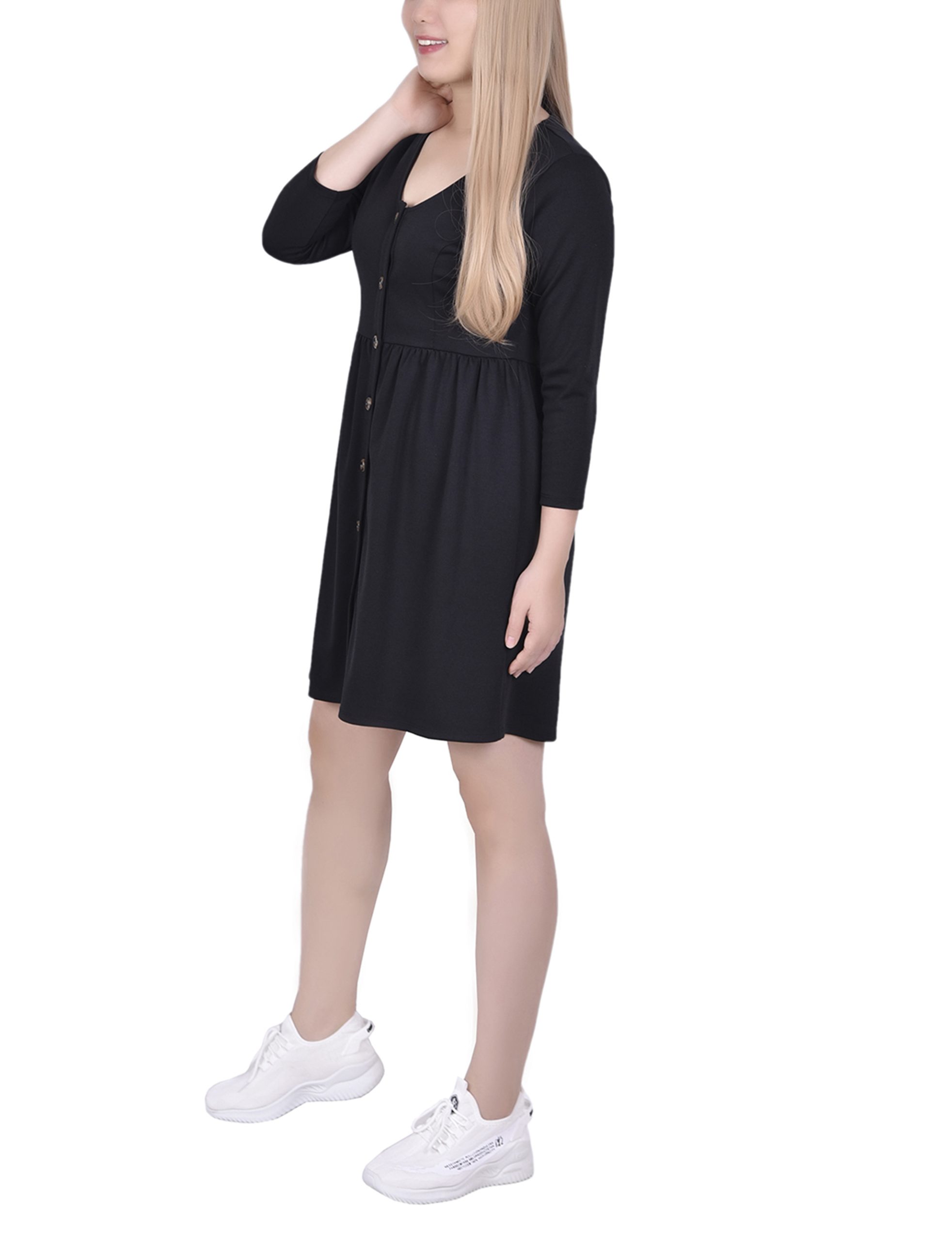 This sweet and sophisticated dress from NY Collection has a fit a flare look and is accented with large statement buttons.