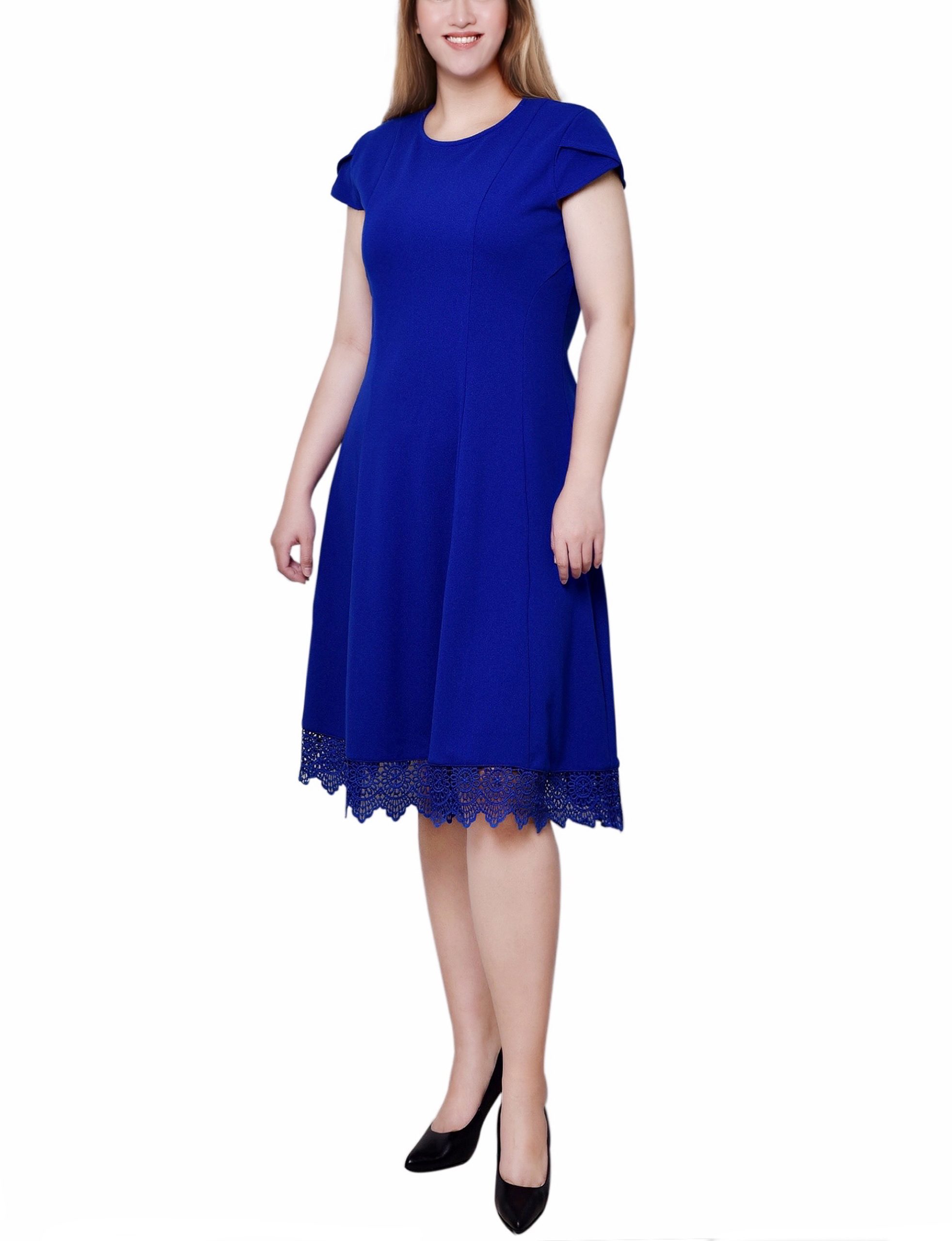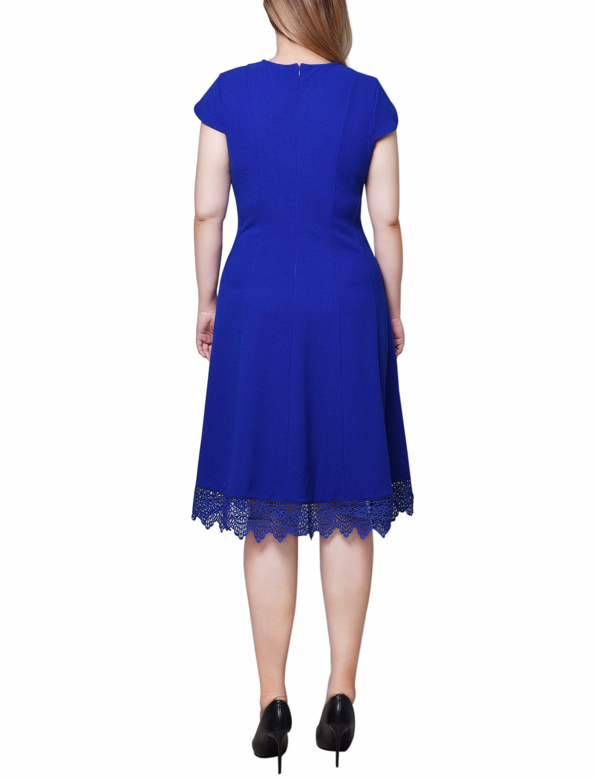 NY Collection presents this lace edged scuba dress. Perfect for the office or that special occasion.