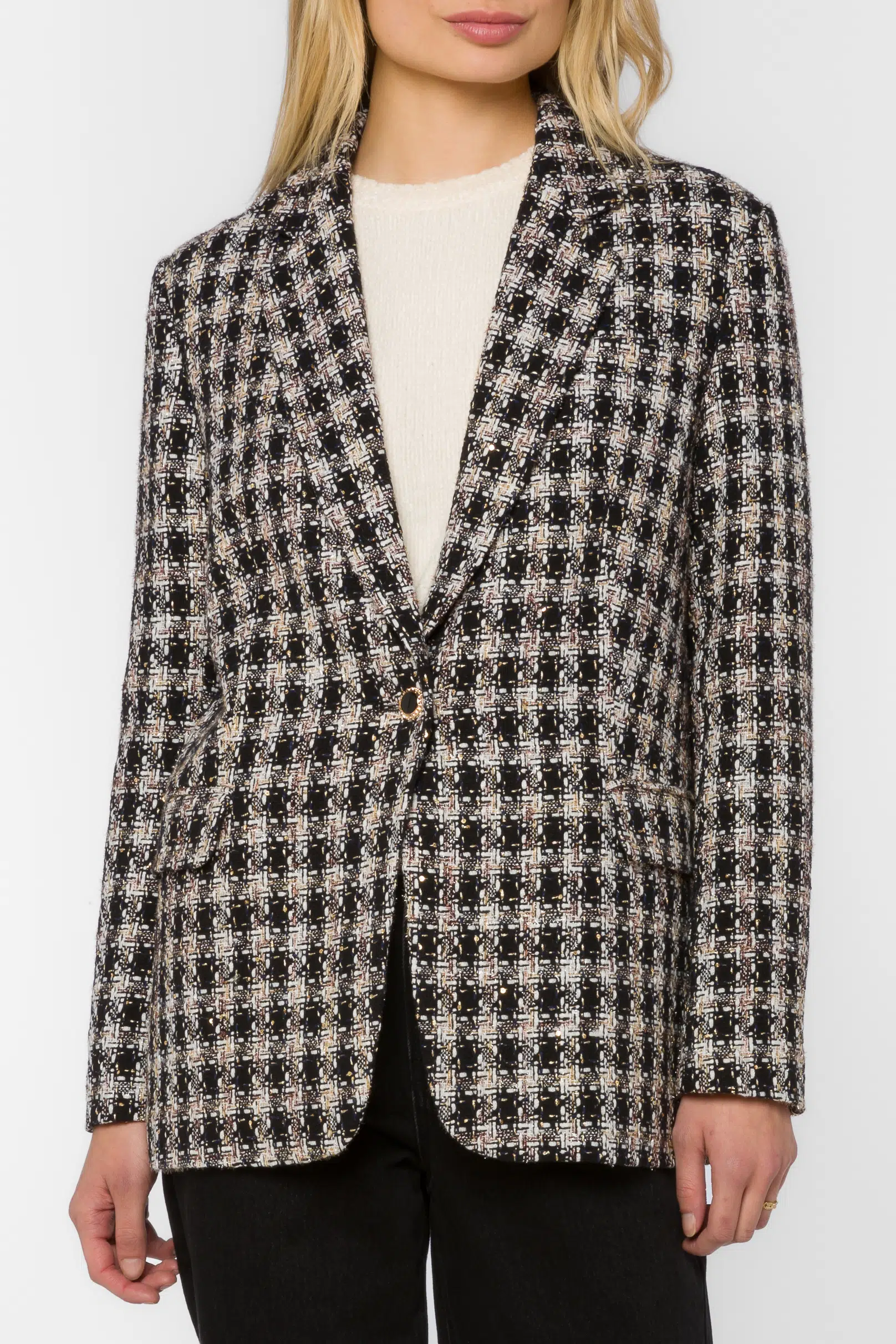 Structured tweed blazer, front flap pockets