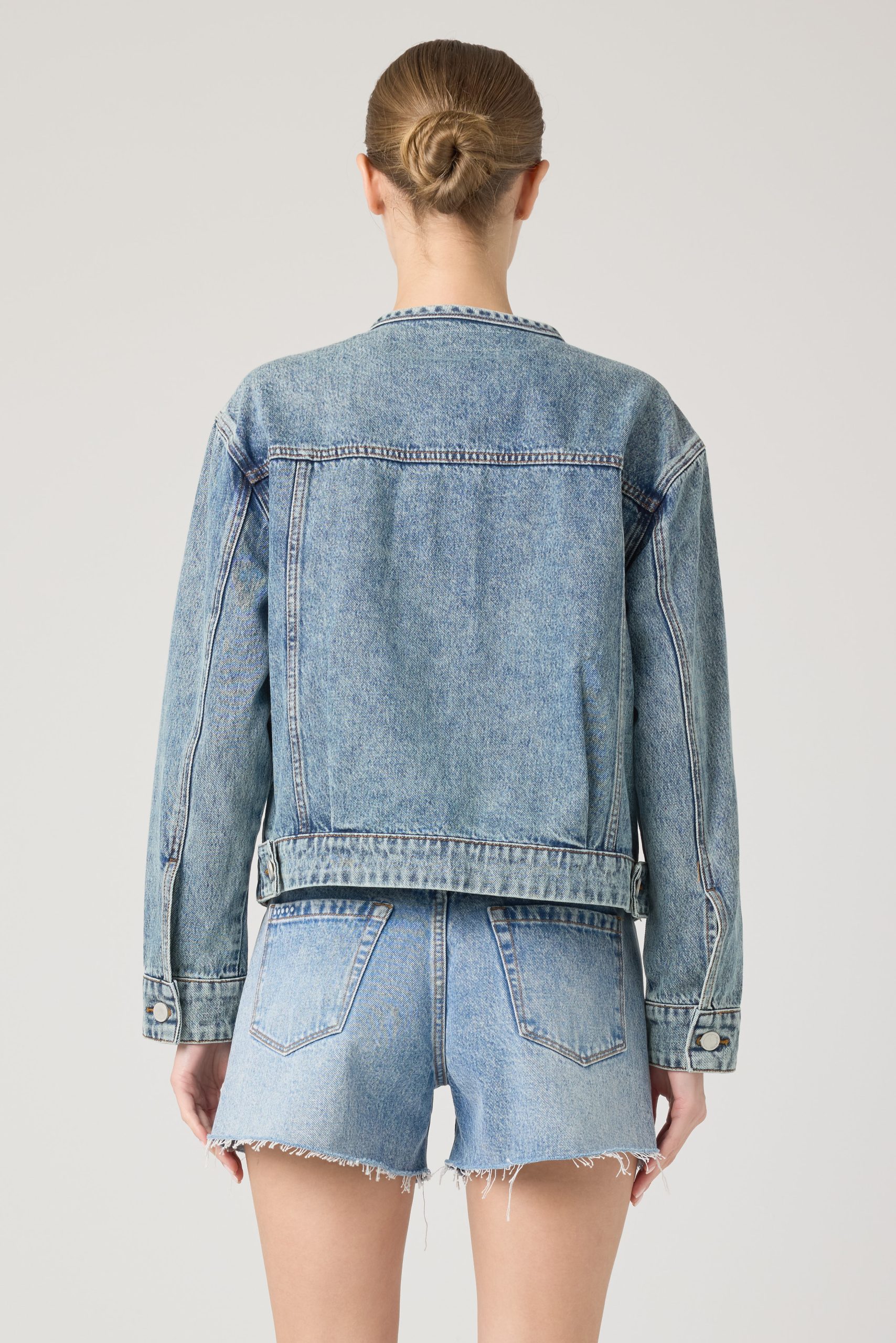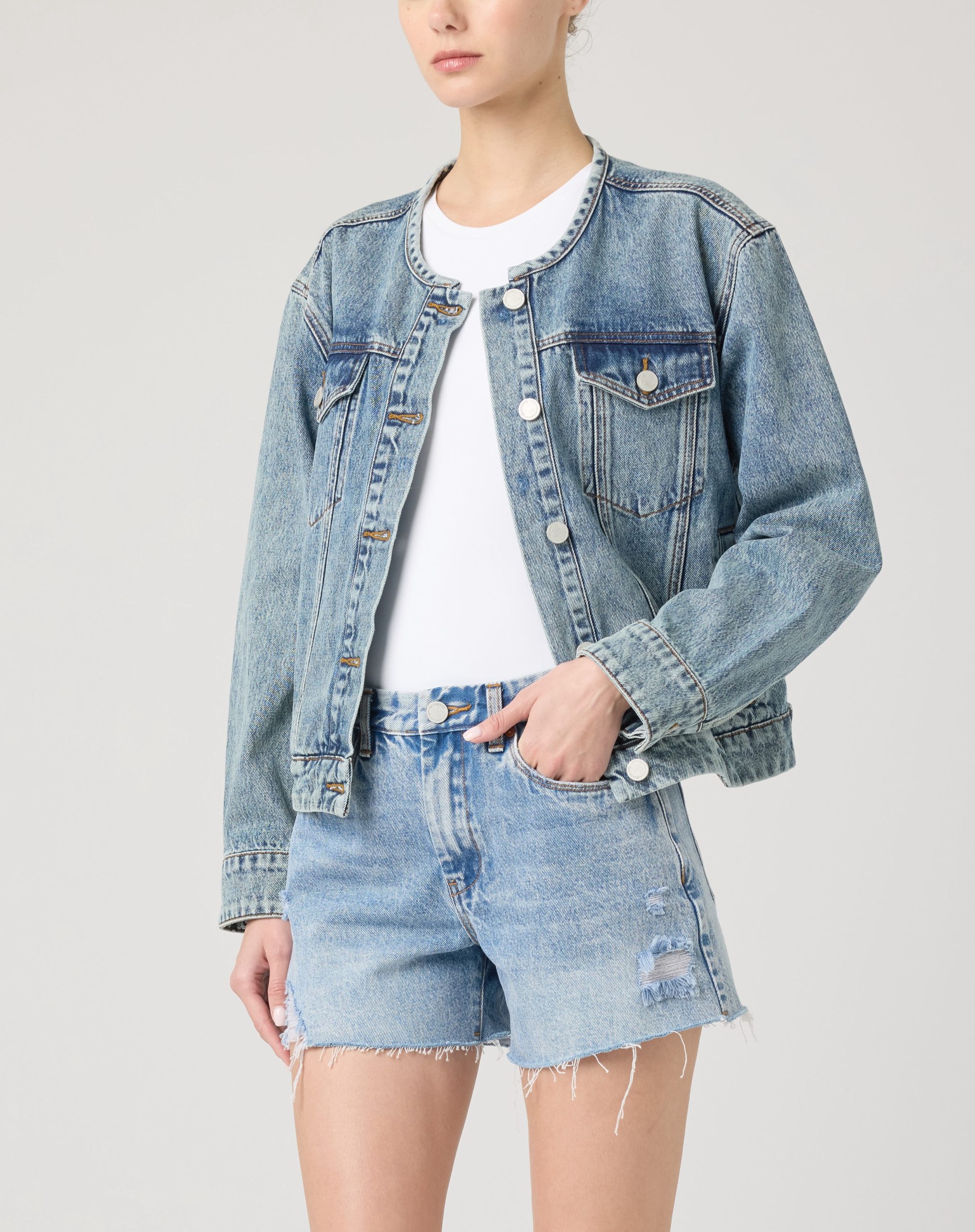 COLLARLESS DENIM TRUCKER JACKET
