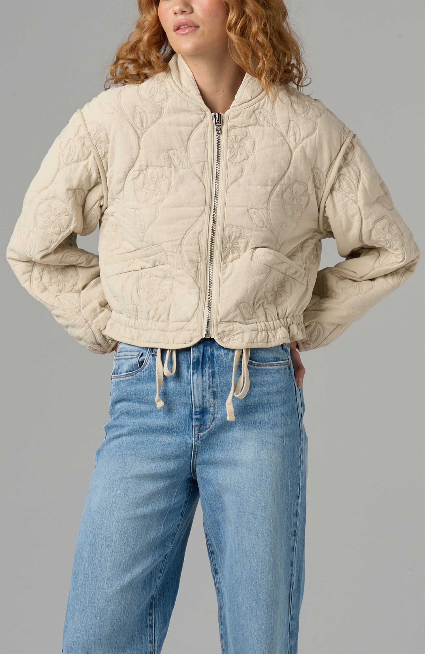 QUILTED FLORAL DETAIL BOMBER JACKET