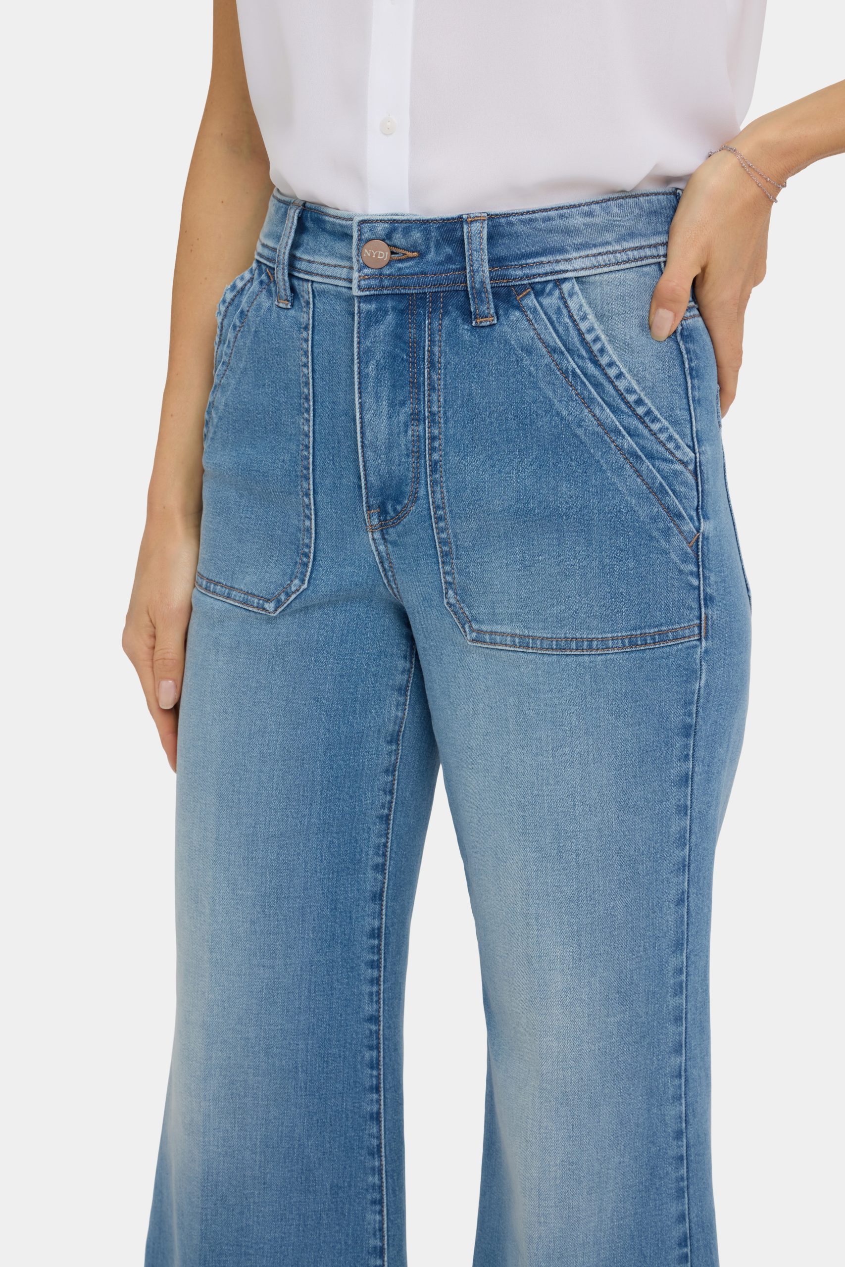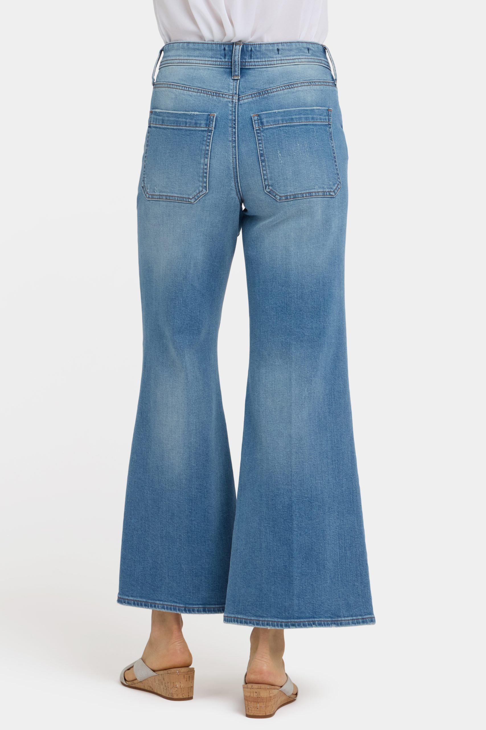 NYDJ’s Mia Palazzo Ankle Jeans make a bold, breezy statement with their super-flared legs. Sitting high on the waist, this pair has a flattering fit that hugs the hips and features front and back utility pockets. Finished with a zip fly, button closure and center-leg creases.