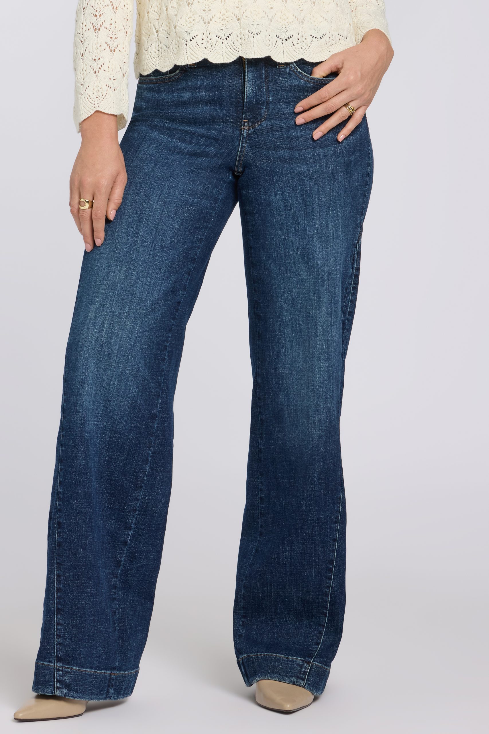The Teresa Wide Leg Jeans by NYDJ cinch your waist, enhancing your natural silhouette, while their wide legs add instant polish to everything you pair them with. This Teresa Wide Leg style features side godets that give it a bold flared look. Our Lift Tuck® Technology is made to help you keep your shape, with a proprietary slimming panel with a patented criss-cross design that smooths and sculpts. Finished with a zip fly with button closure and five-pocket styling.