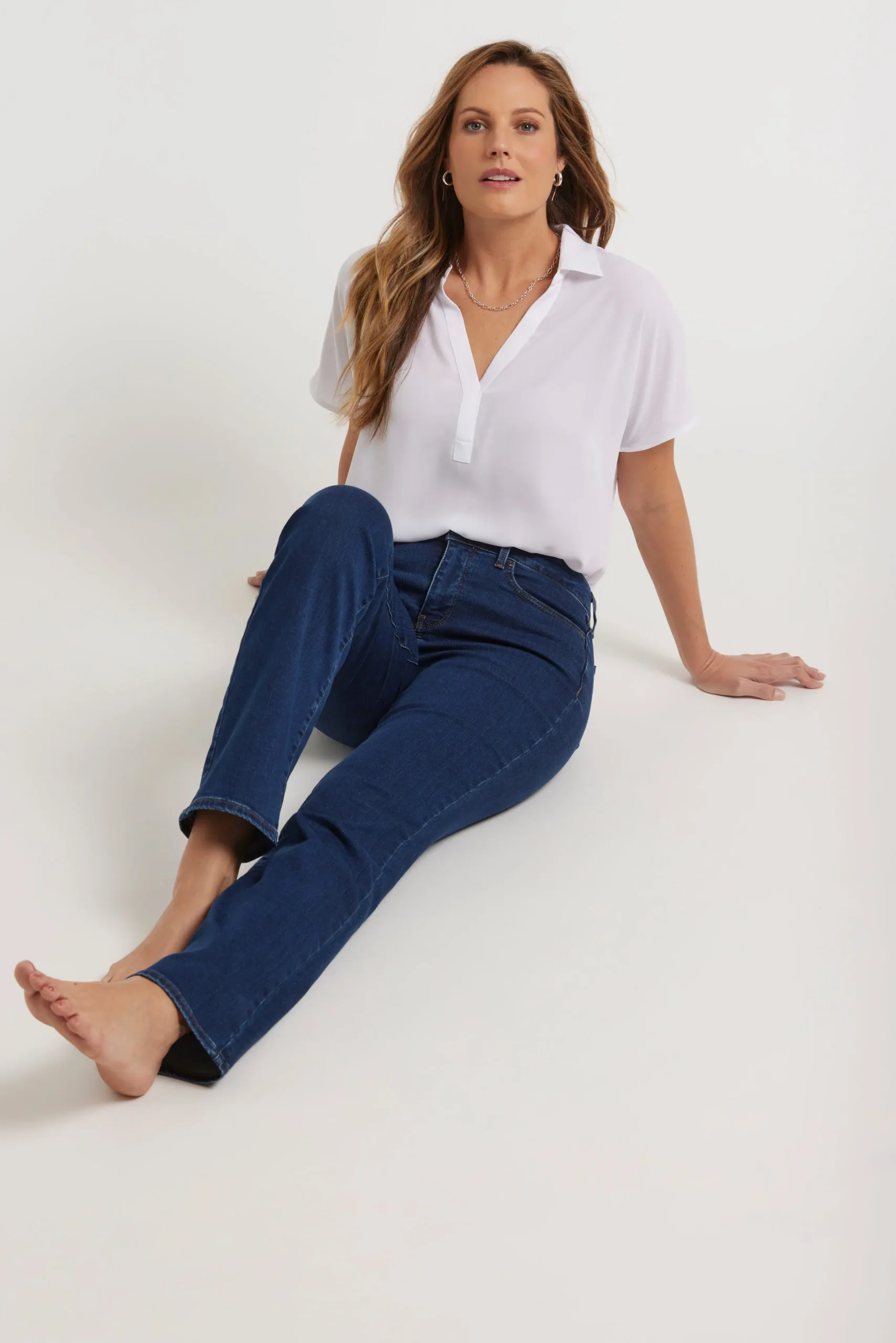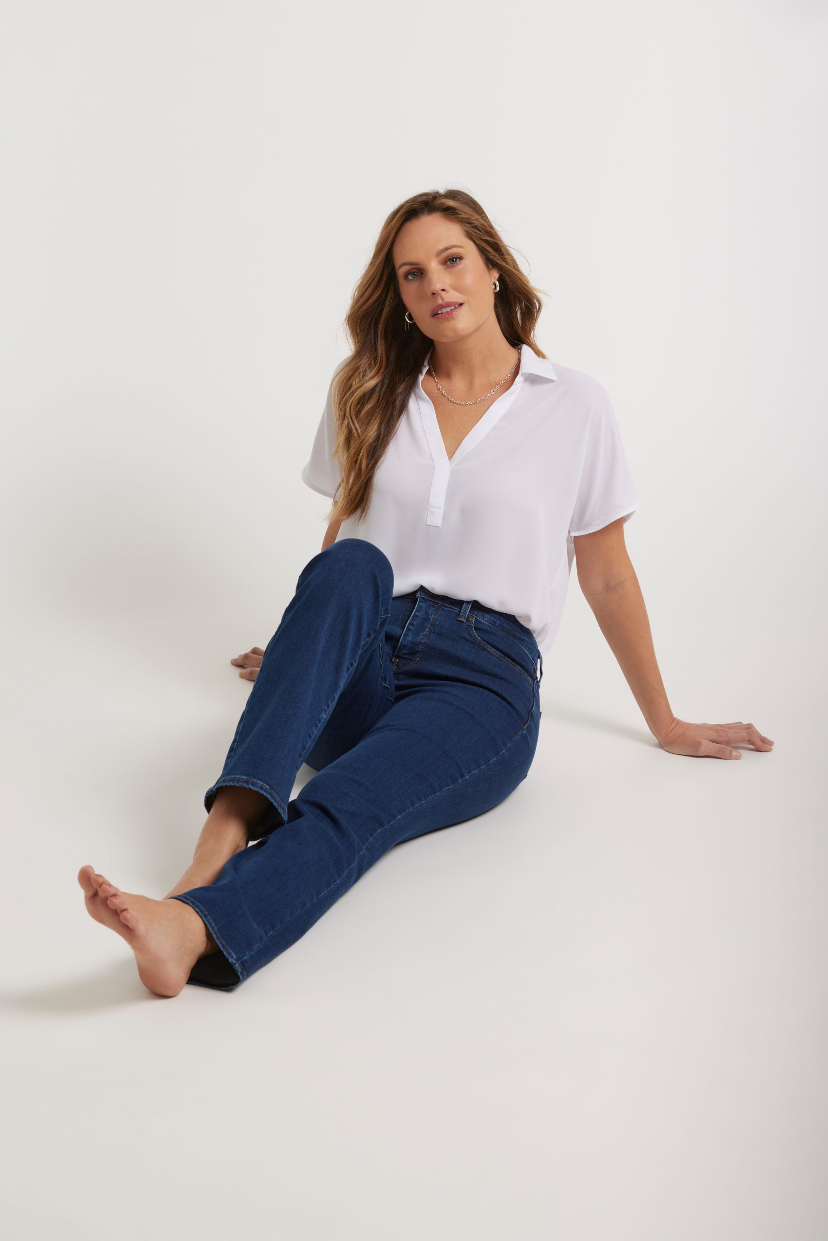 You can’t go wrong with our iconic bestselling fit. The curve-sculpting, figure-elongating construction of NYDJ’s Marilyn Straight Jeans pairs well with everything, in a classic straight-leg silhouette. Our Lift Tuck® Technology uses a proprietary slimming panel with a patented criss-cross design to shape and support your curves. Features classic five-pocket styling and a zip fly with button closure. This jean is made with earth-friendly methods that result in reduced consumption of water, chemicals and/or energy.
