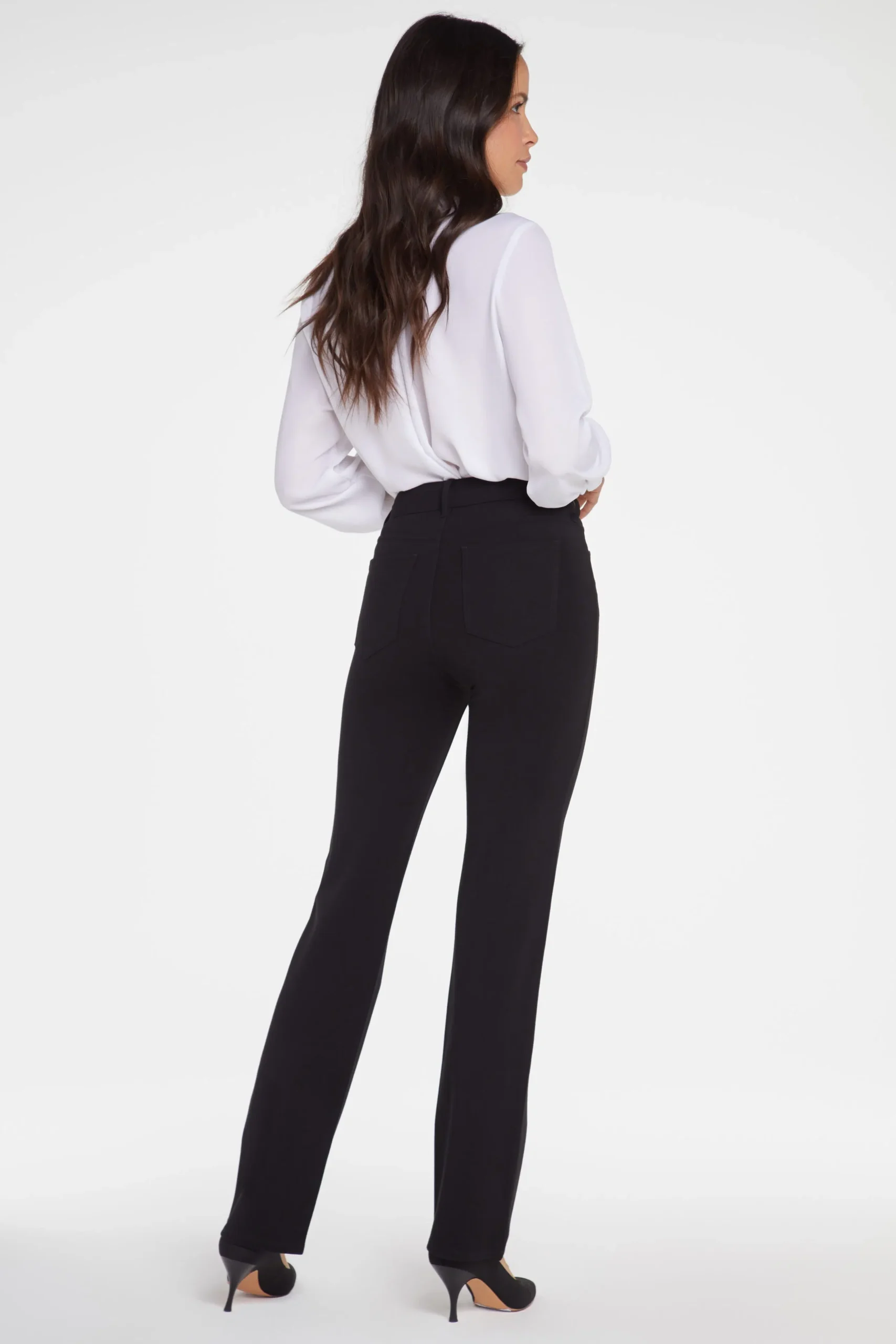 Our most popular silhouette, now in super-sculpting compression ponte. NYDJ’s Marilyn Straight Pants have a flattering and versatile straight-leg fit that elongates the figure, and this pair is designed to be especially sleek with unique high-tech fabric that shapes and supports. Lift Tuck® Technology uses a proprietary slimming panel with a patented criss-cross design to flatten in front and lift in back for even more smoothness. The styling of this pair is finished with five pockets and a zip fly with button closure. These pants are part of Sculpt-Her™, NYDJ’s most novel collection of compression-contouring silhouettes with an unparalleled, cutting-edge fit.