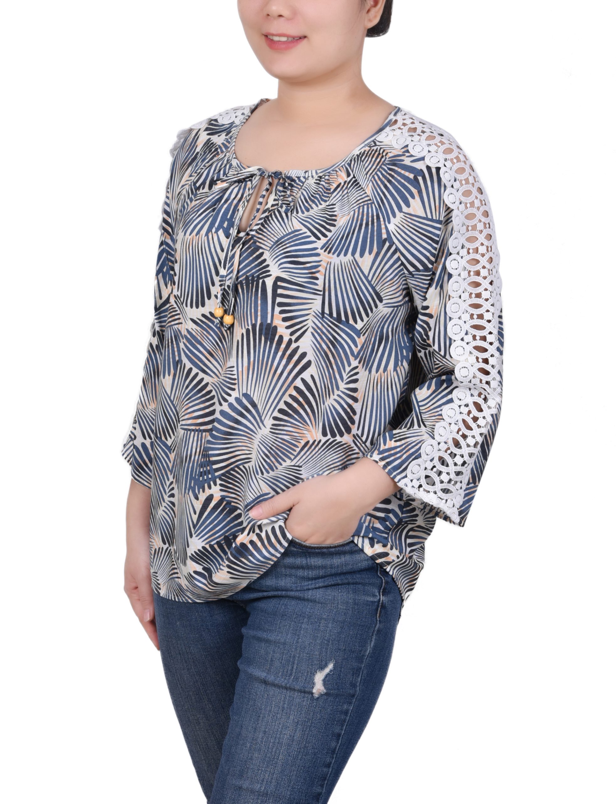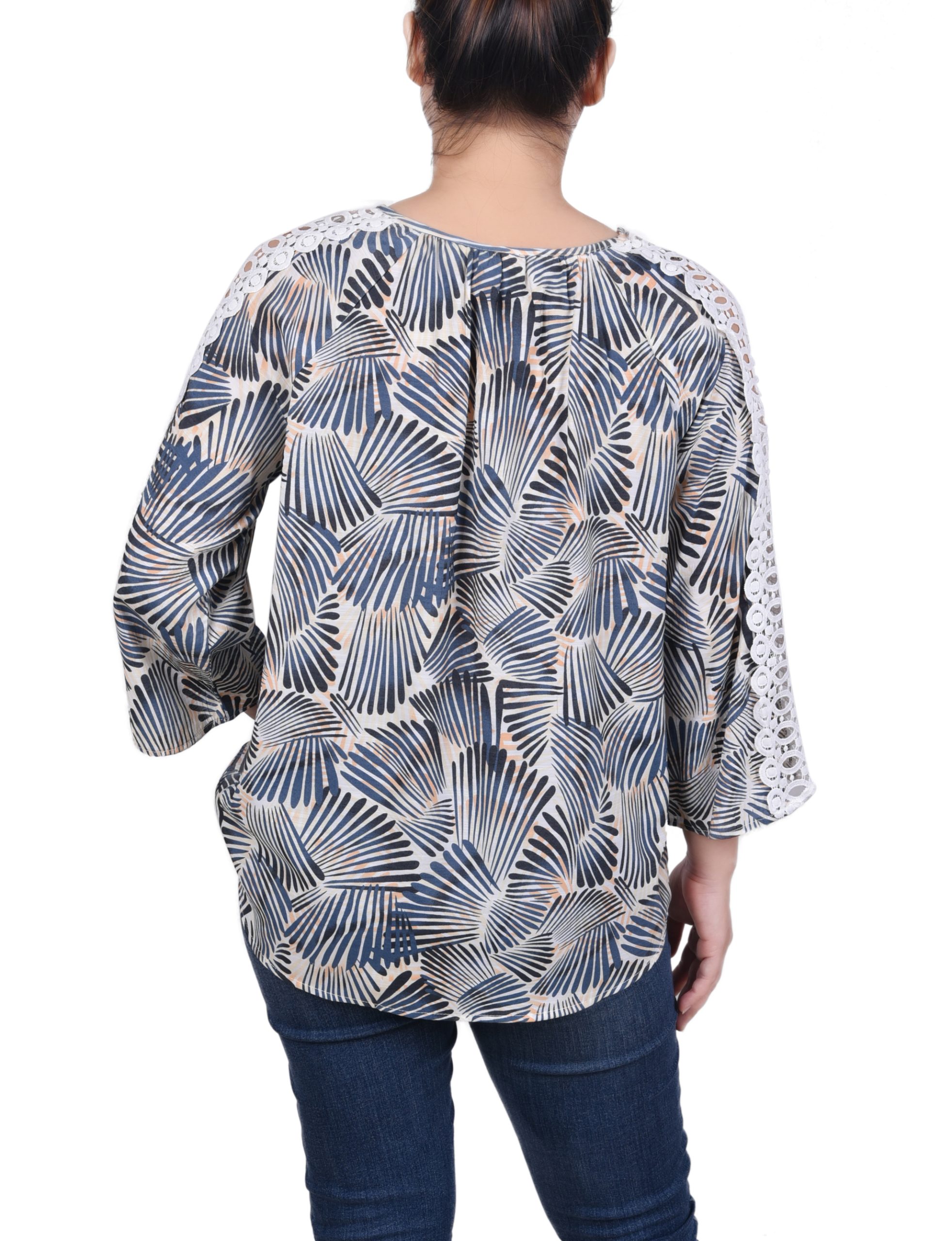 3/4 Sleeve Crochet Detail Blouse