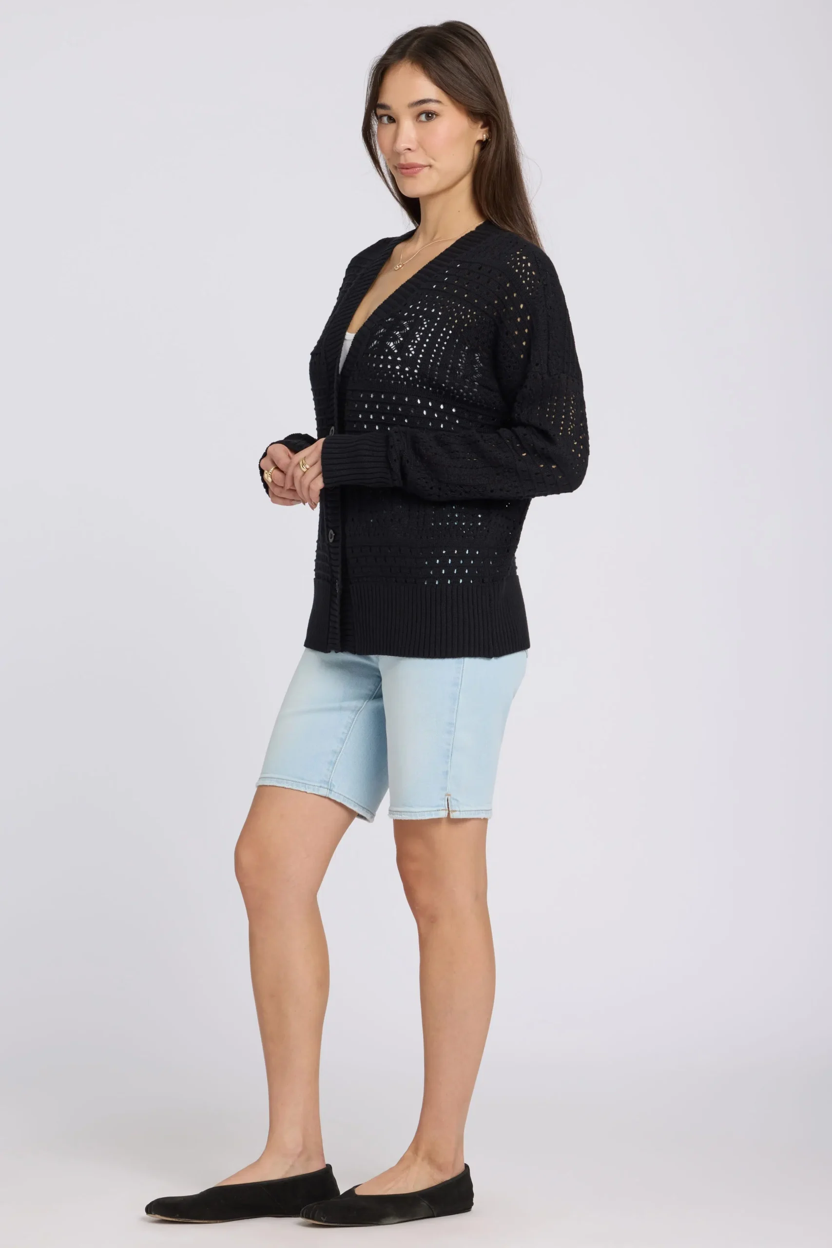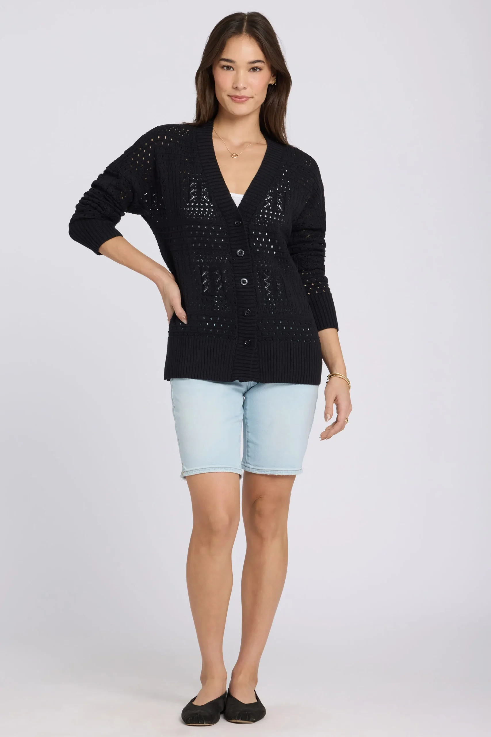 A classic cardi elevated by mixed textures, NYDJ’s Pointelle Cardigan features pointelle stitching edged with ribbed trim. Its cotton-blend knit makes it a perfect layer for spring and summer. Finished with front button closures.