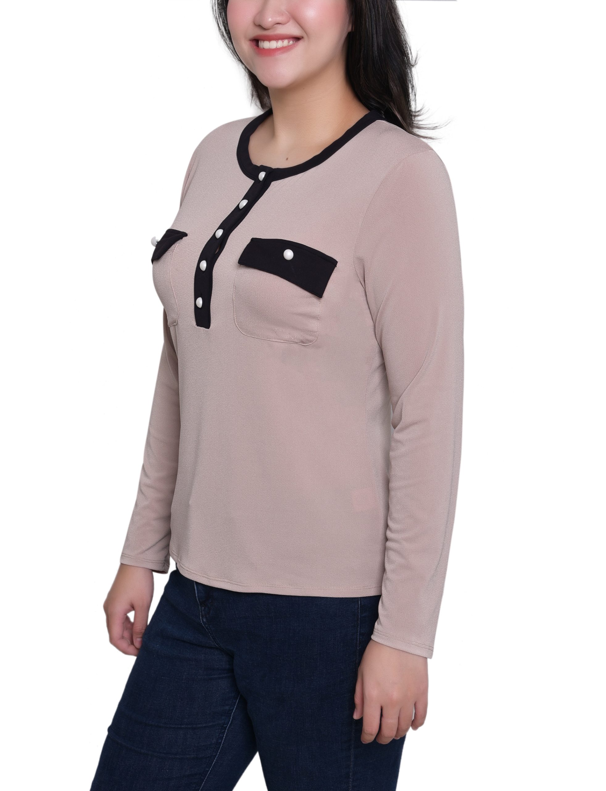 Long Sleeve Contrast Detail Top