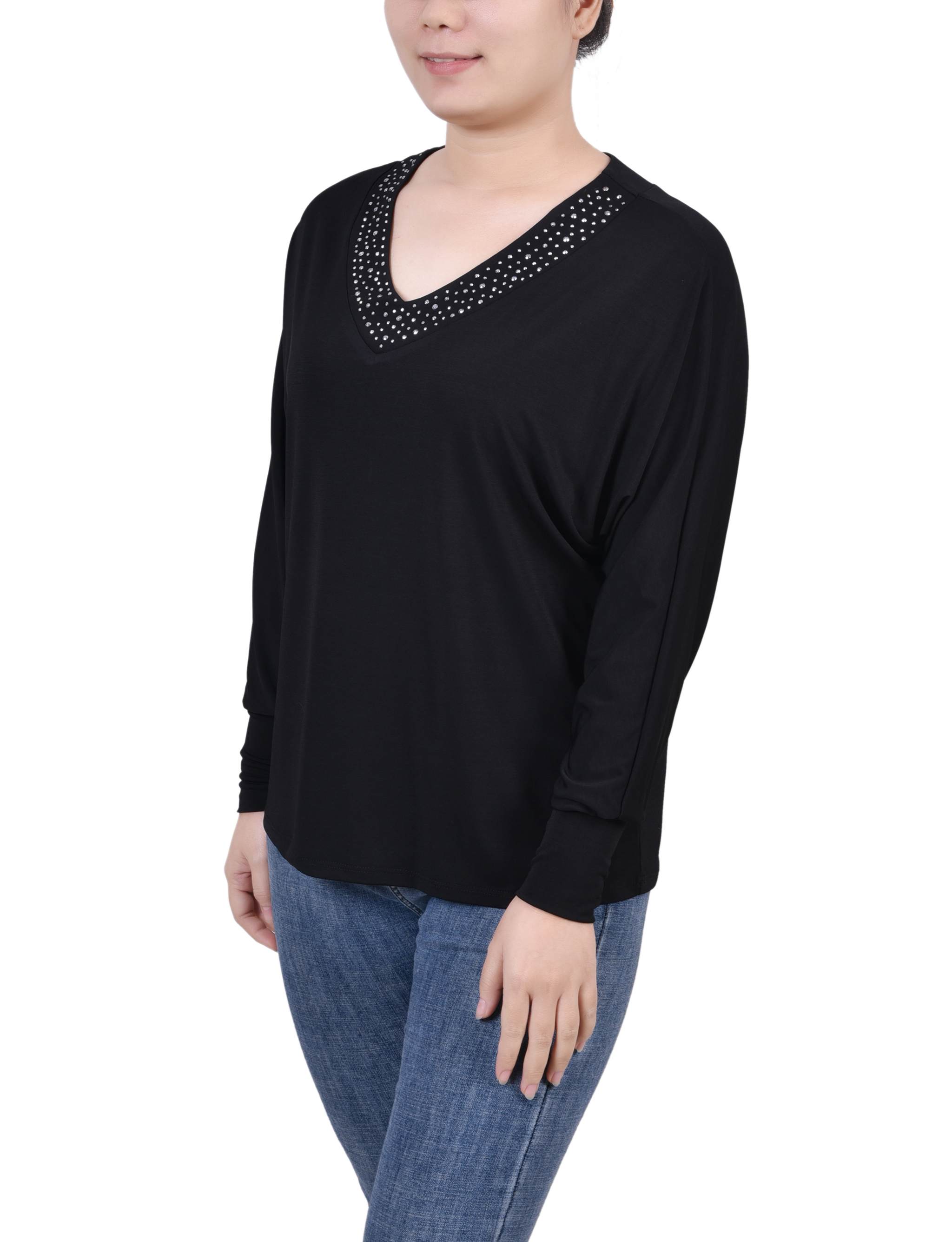 This studded V-neck from NY Collection will be your go-to. So easy to wear yet styled for the season.