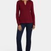 Soft and stretchy with a touch of Lurex® sparkle, the Shimmer Rib Knit Henley Top by NYDJ puts a festive spin on casual looks. This cozy ribbed pullover style is finished with a split neckline and long sleeves.