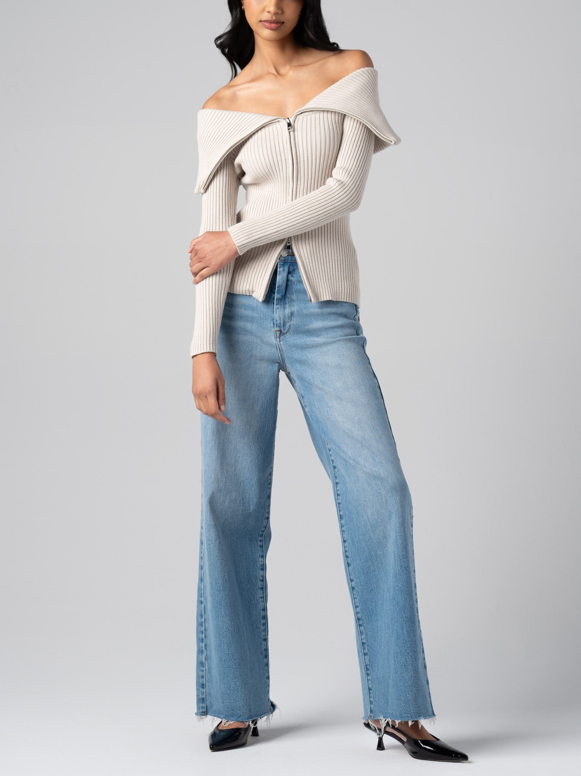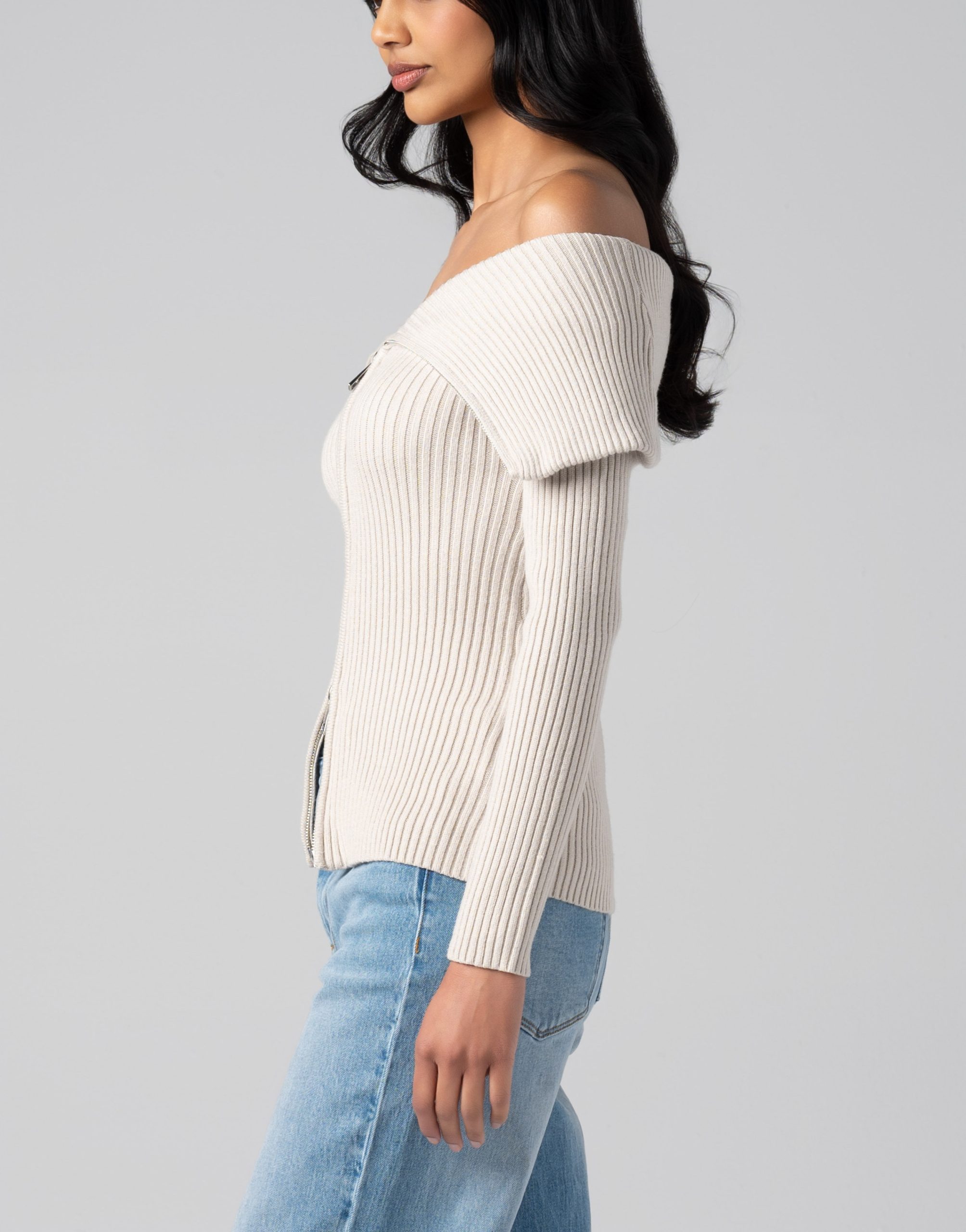 BLANKNYC WOMEN’S OFF SHOULDER SWEATER WITH ZIPPER DETAIL