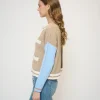Color blocked cardigan- 53 cotton 25 acrylic 20 poly 2 spandex